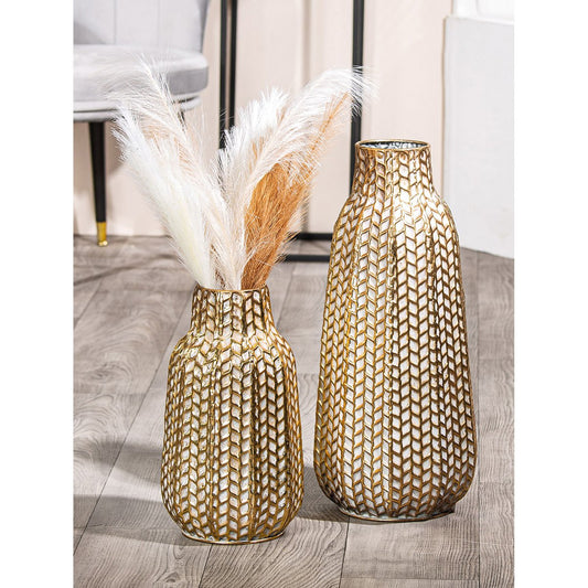 AusverkauftHalsvase groß Brokat, goldfarben; weiß H.85 cm