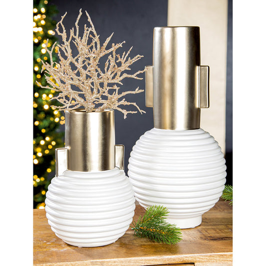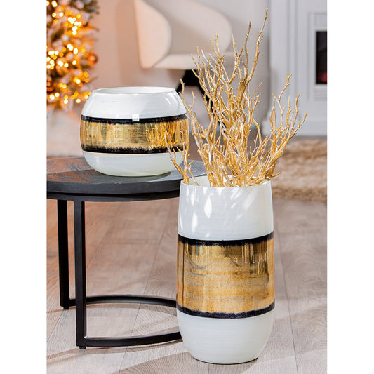 AusverkauftVase bauchig Brokat, goldfarben; weiß H.21 cm
