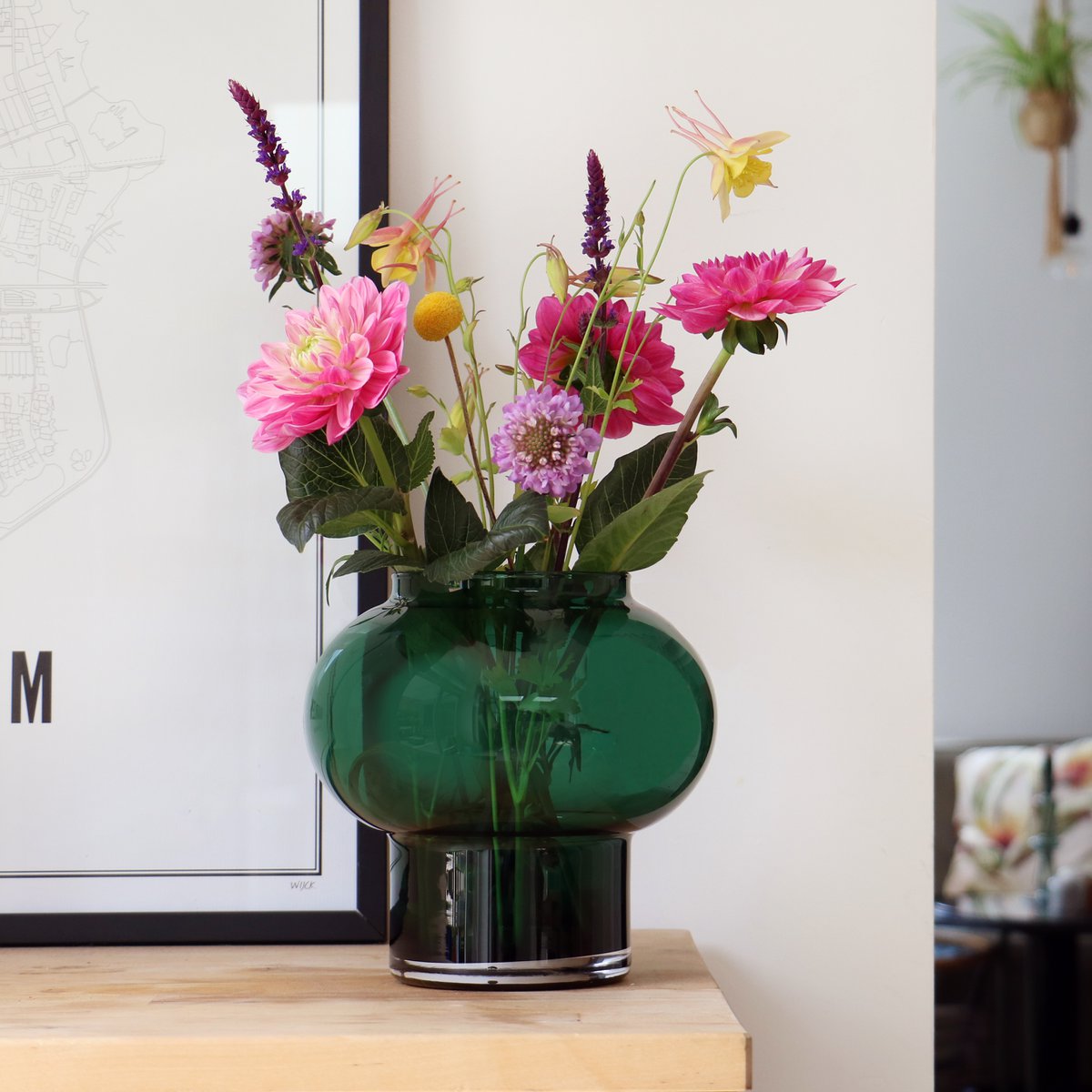 Diese schöne dunkelgrüne Farbe verleiht dem Raum sofort ein schickes Aussehen. Vervollständigen Sie es mit einem schönen Blumenstrauß und lassen Sie Ihre Blumen oder Seide in dieser hochwertigen Vase erstrahlen.