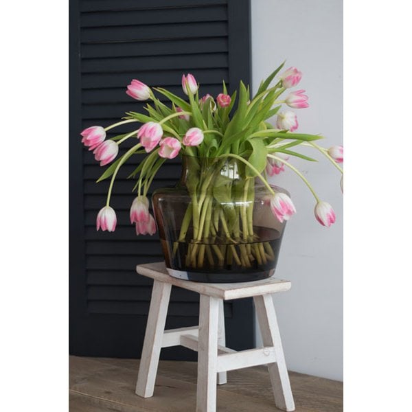Diese Vasen bestehen aus wunderschönem, hochwertigem Glas, sind mundgeblasen und haben einen polierten Rand. Da sie von Hand gefertigt werden, kann es im Glas zu Blasen oder Schlieren kommen. Diese kleinen Unvollkommenheiten betonen die Handwerkskunst. Die Glaswaren haben eine besonders lange Lebensdauer, da beste Bodenarten und Materialien verwendet werden.