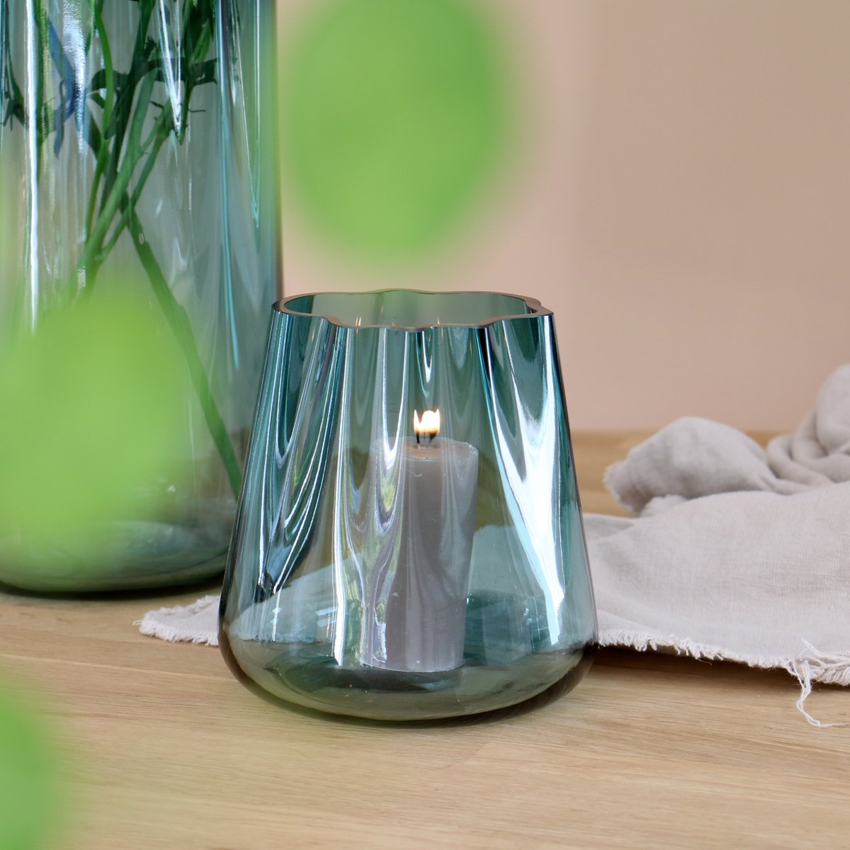 Eine frische blaue Farbe, ein verspieltes Modell mit einem einzigartigen Oberteil; Wir möchten Ihnen das Modell Parana vorstellen. Geeignet sowohl für einen Blumenstrauß als auch für eine Kerze. Total lustig!